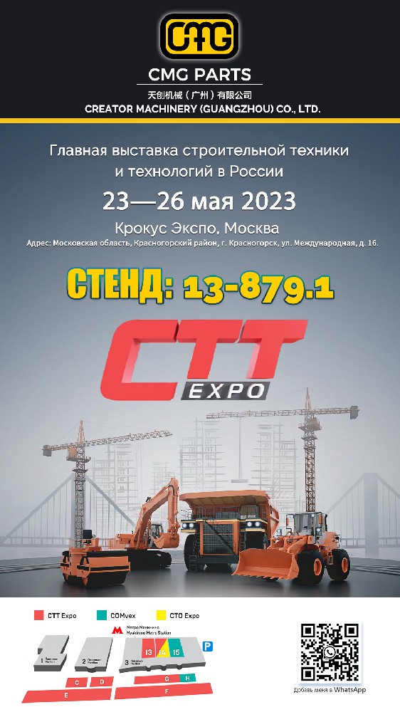 2023年5月23日-26日,2023年俄羅斯國際建筑及工程機械展覽會(CTT Expo 2023)將在俄羅斯莫斯科克魯庫斯展覽中心舉行。CTT Expo為俄羅斯、中亞及東歐地區(qū)規(guī)模最大的國際工程機械展覽會,2023年展覽總面積預(yù)計超過10萬平米,創(chuàng)歷史新高。屆時,CMG天創(chuàng)機械將于13號館879-1號展位期待您的到來!